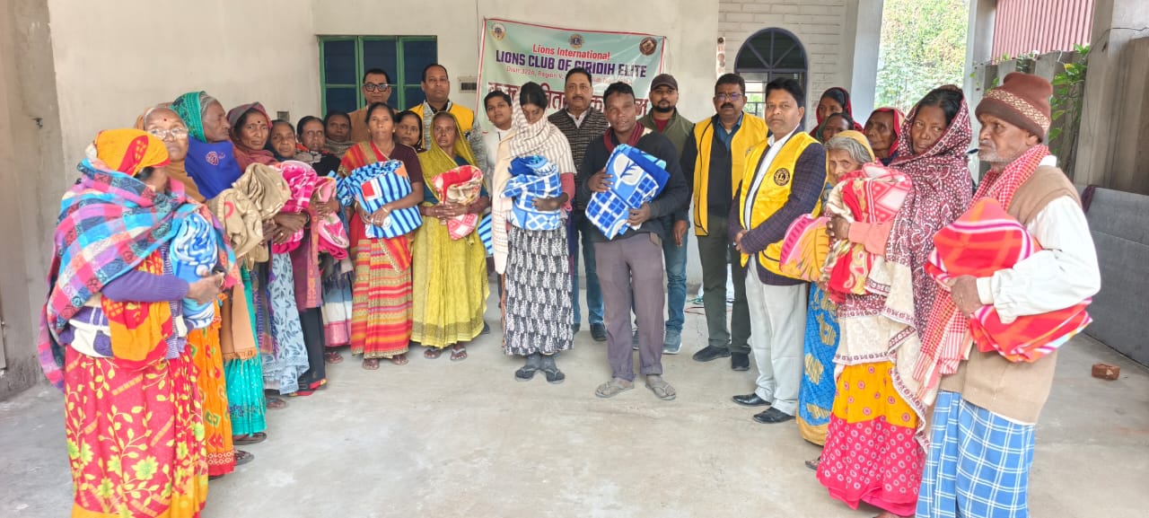 गिरिडीह: बढ़ती ठंड और शीतलहर को देखते हुए लायंस क्लब ऑफ गिरिडीह एलिट ने एक सराहनीय पहल करते हुए जरूरतमंदों के बीच कंबल वितरण कार्यक्रम आयोजित किया। इस सेवा अभियान के तहत शहर के तिरंगा चौक, सुभाष पब्लिक स्कूल परिसर, बक्सीडीह रोड एवं सिहोडीह क्षेत्र में 200 से अधिक महिला-पुरुषों को कंबल वितरित किए गए।