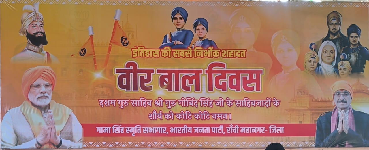 वीर बाल दिवस के अवसर पर राजधानी रांची में गामा सिंह स्मृति सभागार में भारतीय जनता पार्टी रांची महानगर जिला की ओर से विशेष कार्यक्रम आयोजित किया गया। इस कार्यक्रम में केंद्रीय रक्षा राज्य मंत्री संजय सेठ, रांची विधायक सीपी सिंह सहित बड़ी संख्या में भाजपा कार्यकर्ता और सिख समाज के लोग मौजूद रहे। सभी ने साहिबजादों के शौर्य, बलिदान और अदम्य साहस को नमन किया।