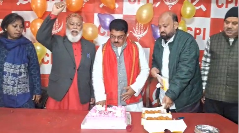 पार्टी के शताब्दी वर्ष के अवसर पर केक काटा गया, जिसमें सभी पदाधिकारियों और कार्यकर्ताओं ने एक-दूसरे को बधाई दी। पूरे कार्यक्रम में एकजुटता और वैचारिक प्रतिबद्धता का संदेश साफ नजर आया।