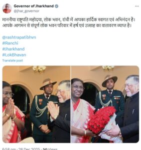 - राष्ट्रपति द्रौपदी मुर्मू का रांची एयरपोर्ट पर भव्य स्वागत