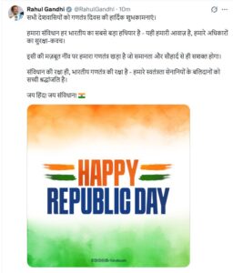 - राहुल गांधी ने गणतंत्र दिवस पर देशवासियों को शुभकामनाएं दीं