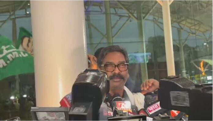 रांची : लगभग एक पखवाड़े की विदेश यात्रा के बाद झारखंड के मुख्यमंत्री हेमंत सोरेन मंगलवार शाम रांची पहुंचे। बिरसा मुंडा हवाई अड्डे पर झारखंड मुक्ति मोर्चा (झामुमो) के कार्यकर्ताओं ने ढोल-नगाड़ों और झारखंडी परंपरा के मुताबिक उनका स्वागत किया।
