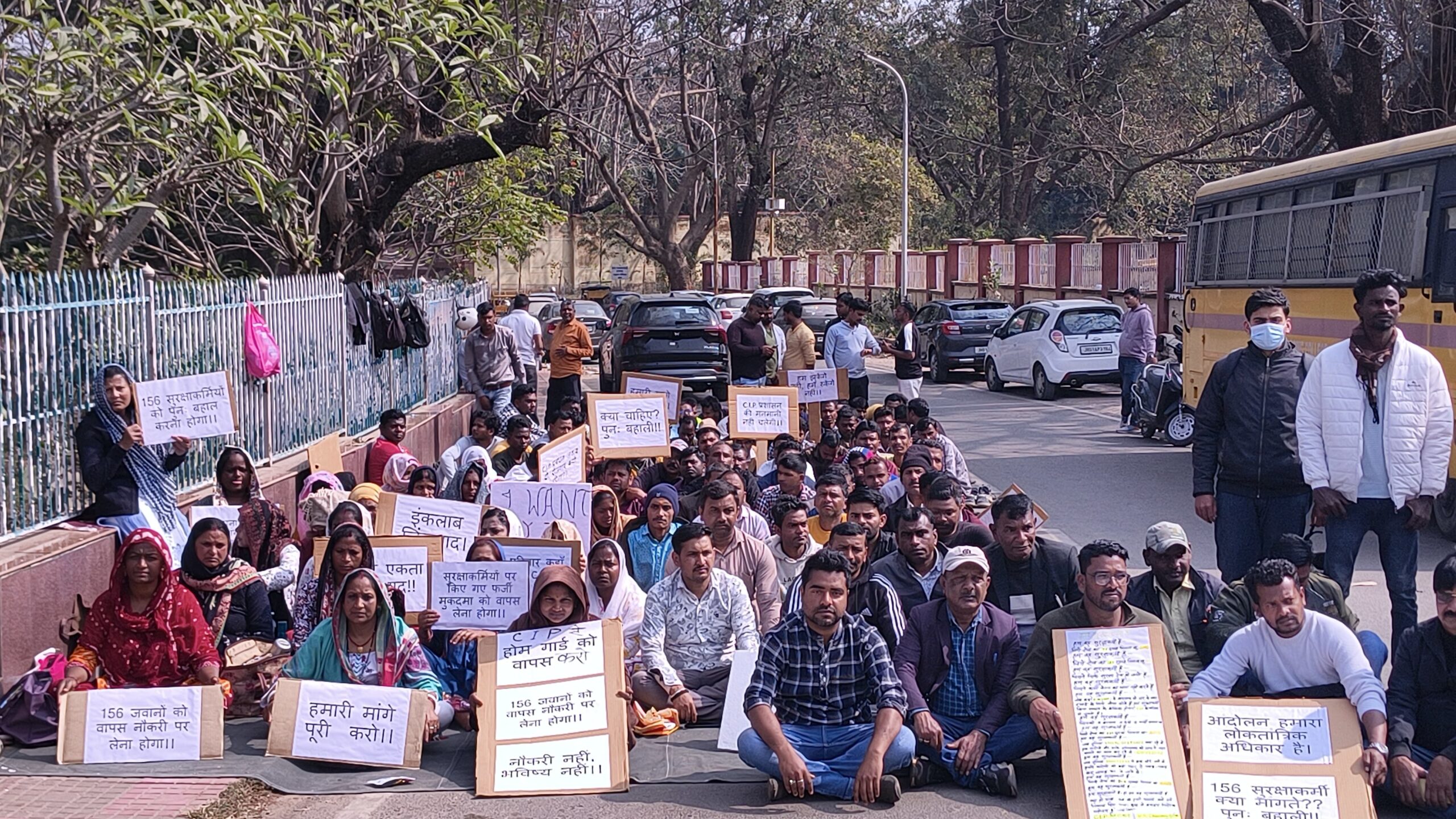 बिना नोटिस नौकरी से हटाने का आरोप, बहाली की मांग को लेकर CIP चौक पर धरना