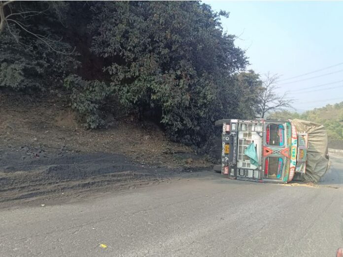 - चढ़ाई के दौरान ट्रक अनियंत्रित होकर सड़क पर गिरा