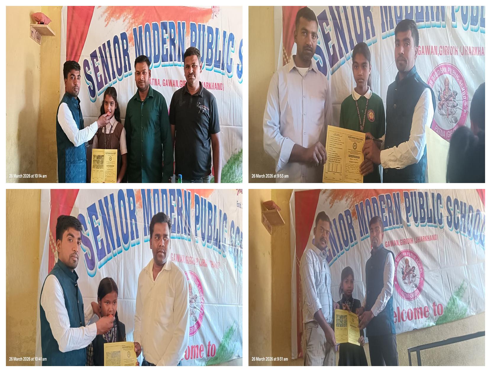 गिरिडीह जिले के गांवा पटना स्थित सीनियर मॉडर्न पब्लिक स्कूल में गुरुवार को वार्षिक परीक्षा परिणाम घोषित किया गया। इस अवसर पर छात्रों और अभिभावकों के बीच खासा उत्साह देखने को मिला और पूरा माहौल खुशी से भर गया।