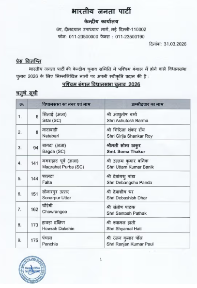 👉 भाजपा ने चौथी उम्मीदवार सूची जारी की